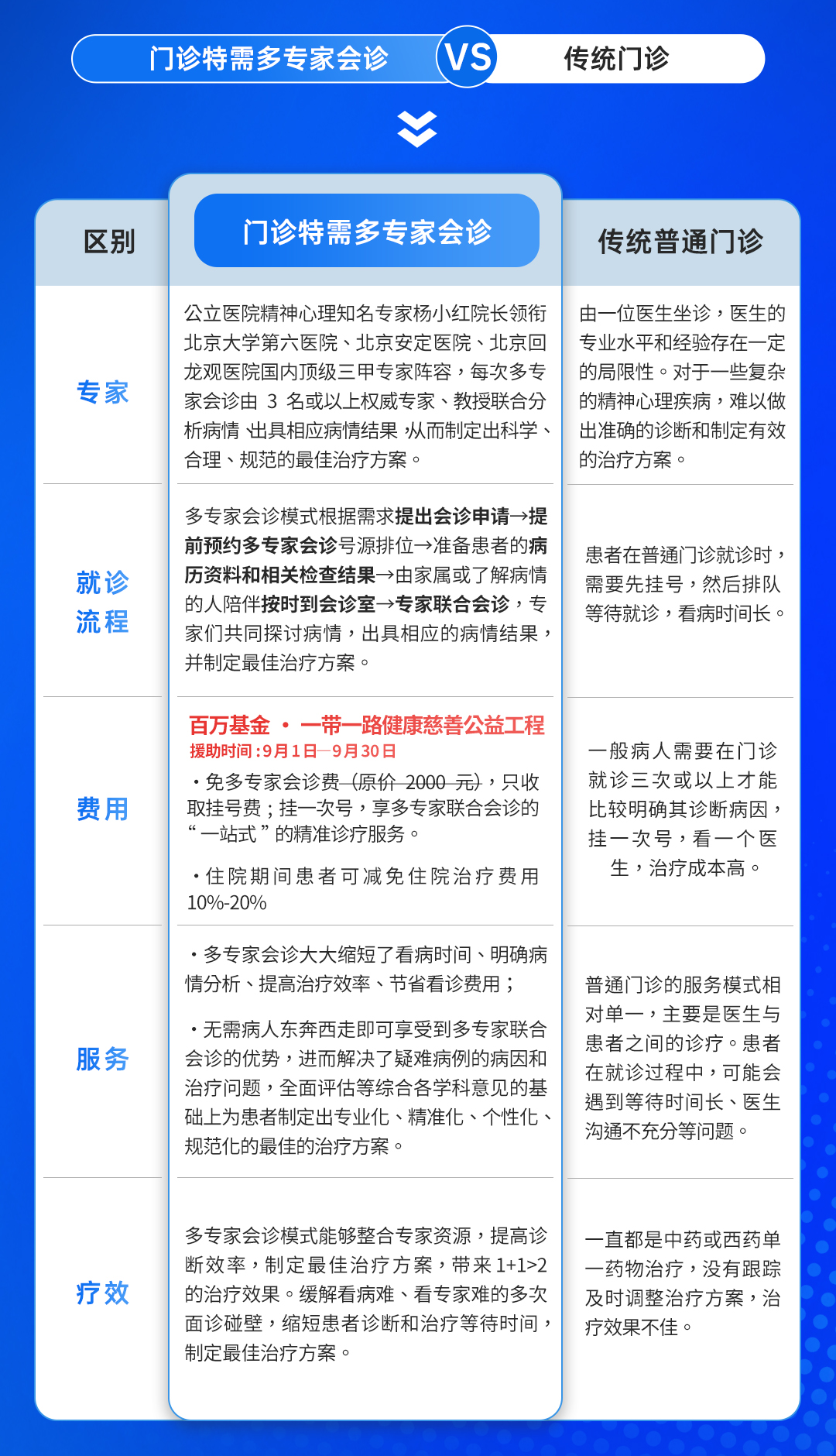 北京医大中西医结合精神心理科由公立医院精神心理知名专家杨小红院长领衔北京大学第六医院、北京安定医院、北京回龙观医院等国内顶级三甲专家阵容。